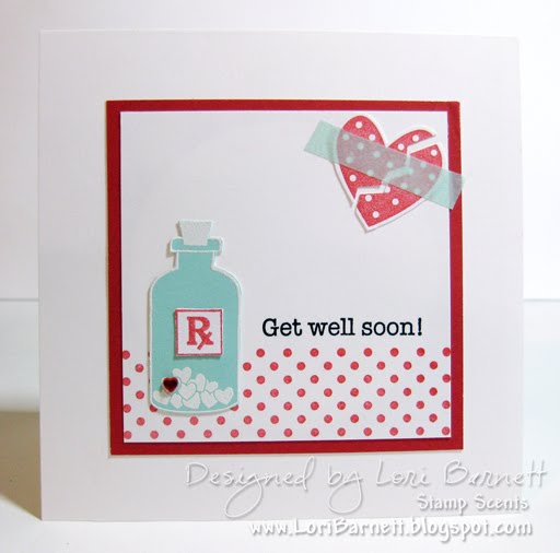 This week over on the CAS-ual Fridays Blog the challenge is to use bling. And as you can see...I have a beautiful red heart rhinestone ever so carefully placed in the medicine jar. Amazing how much 1 tiny little embellishment makes such a big statement. I love this card so much I want to make a dozen of them!!! lol!